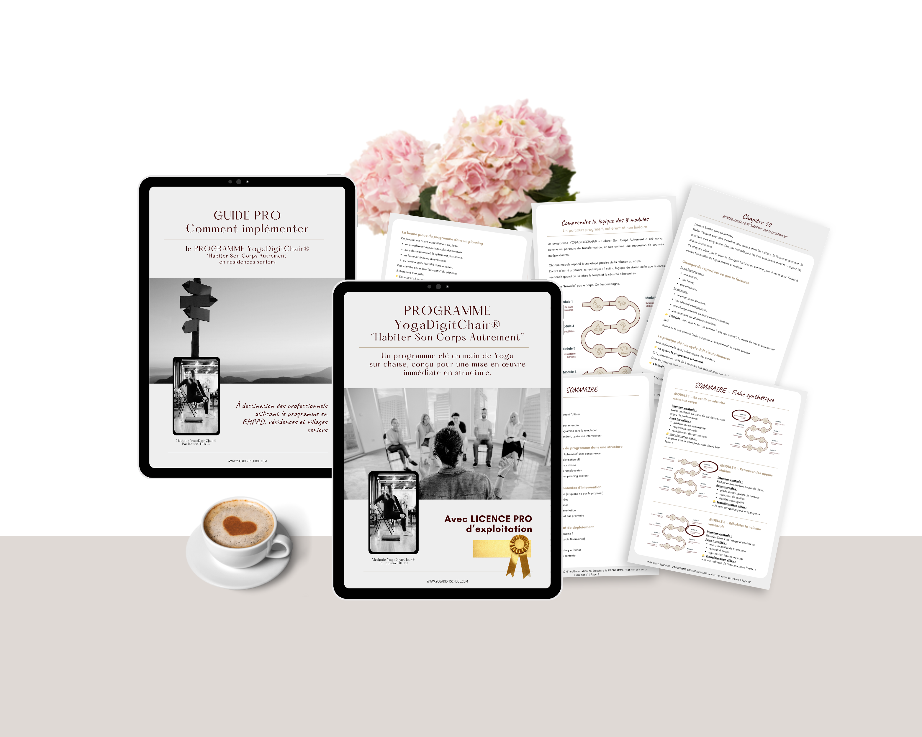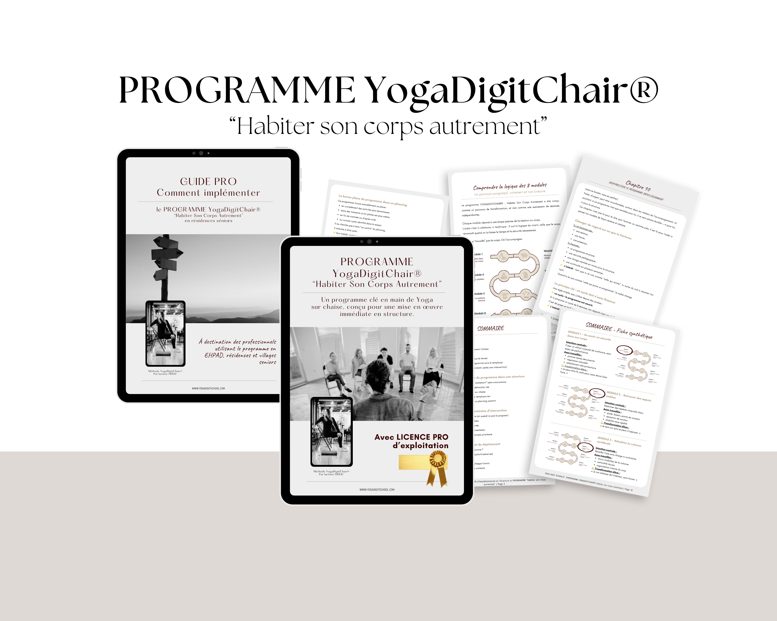 Programme professionnel clé en main de yoga sur chaise conçu pour intervenir en structure seniors. Il réunit deux piliers indissociables : un parcours pédagogique en 8 modules prêt à l’emploi et un Guide Pro d’implémentation pour le positionnement, la mise en place et la valorisation. Un dispositif complet pour intervenir avec clarté, légitimité et durabilité.